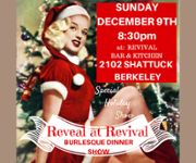 Please join us on Sunday December 9th at 8:30pm for Reveal at Revival, Currently the Bay Areas only Burlesque Dinner Show. This event is a perfect place to have your holiday office soiree, a date, or just to come and start celebrating the holidays with fun and in fashion with some friends!